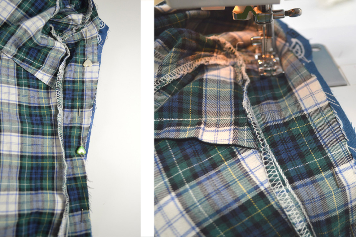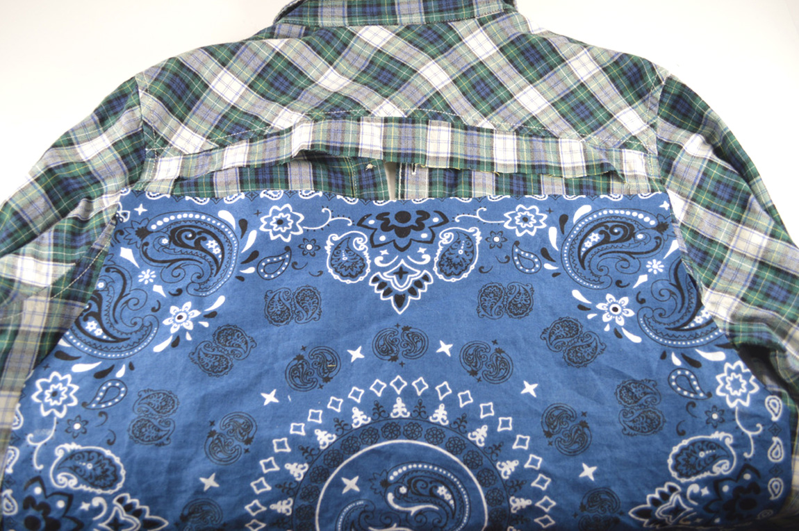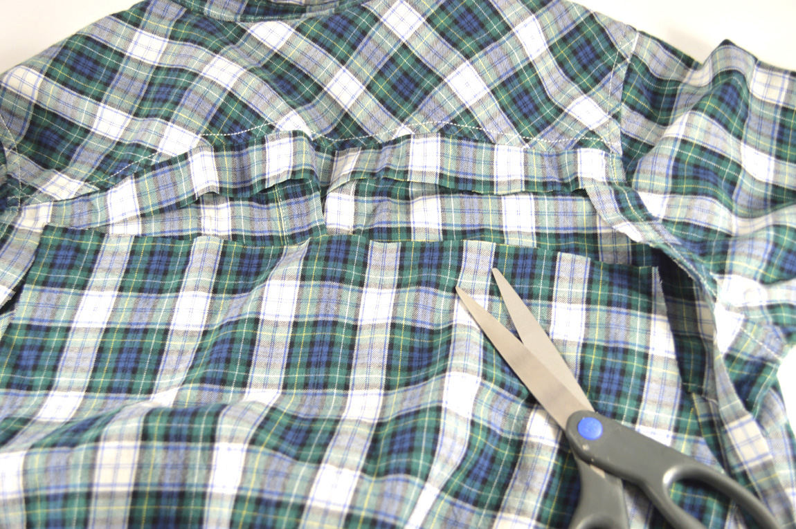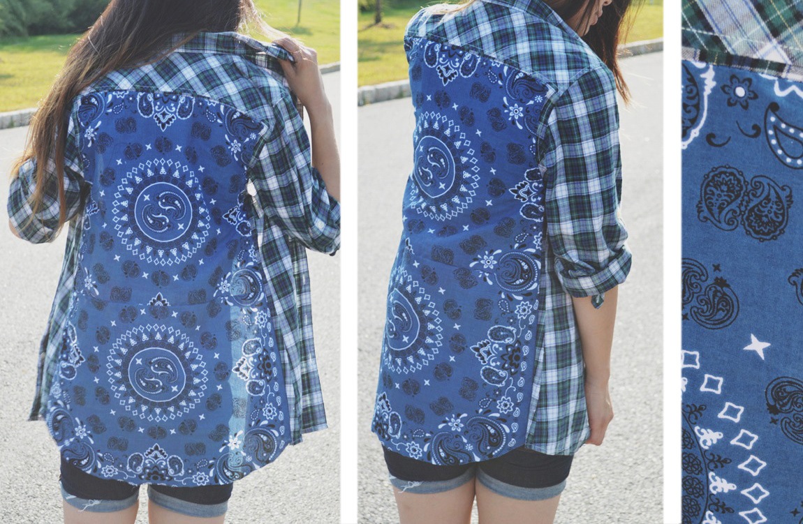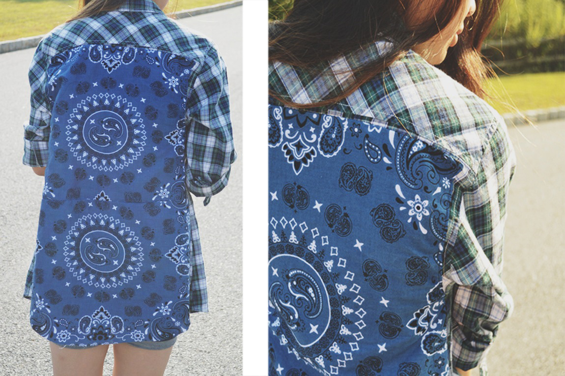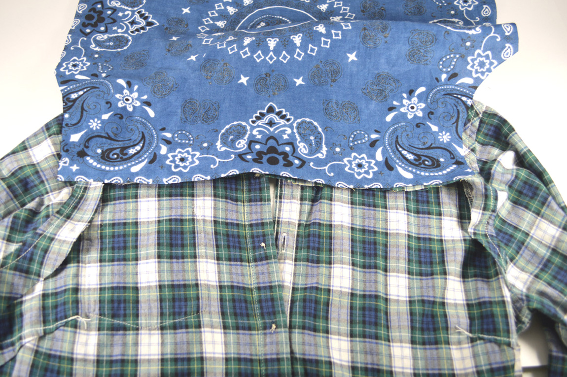 6) The bandanna fabric is now ready to fit perfectly into the back of the plaid shirt.