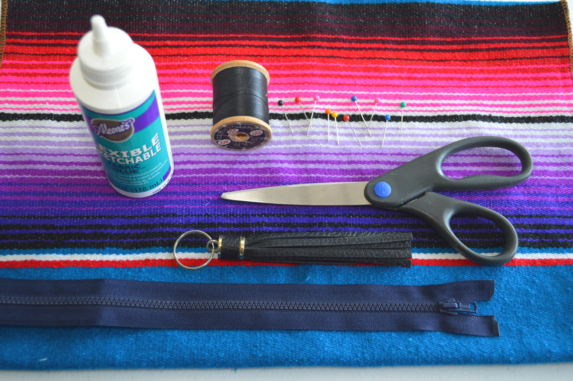 Turn the clutch inside out, and add a key chain or pendant to the zipper. I think a leather tassel works perfectly with the Southwestern vibe of this project.