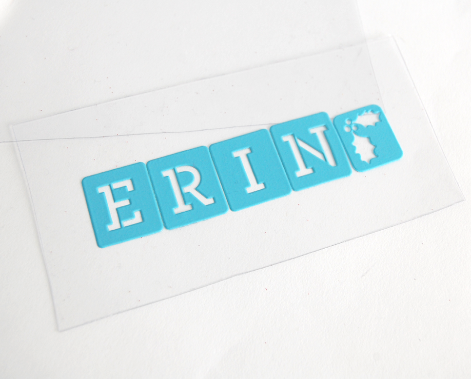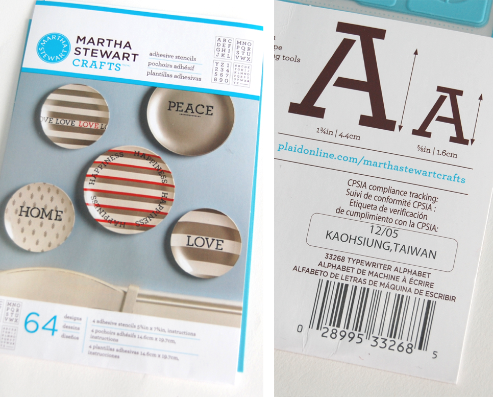 What I Used:– Martha Stewart Crafts Adhesive Stencils (Typewriter Alphabet & Holiday Icons II)