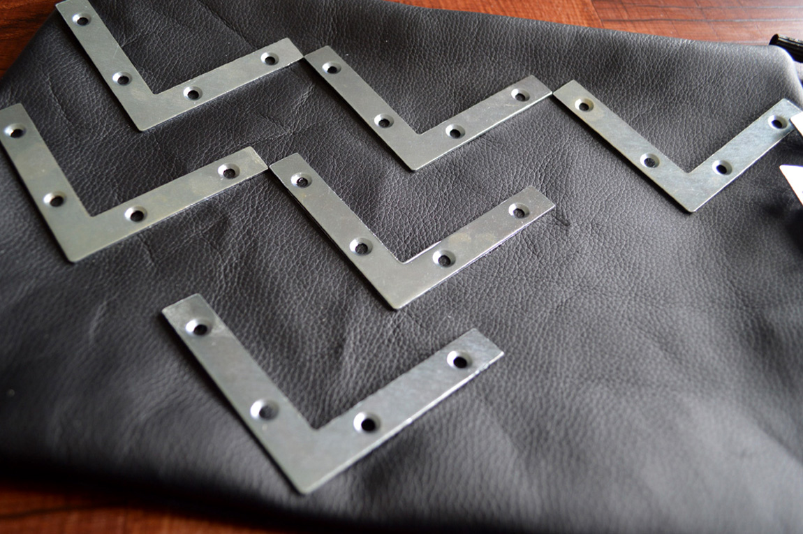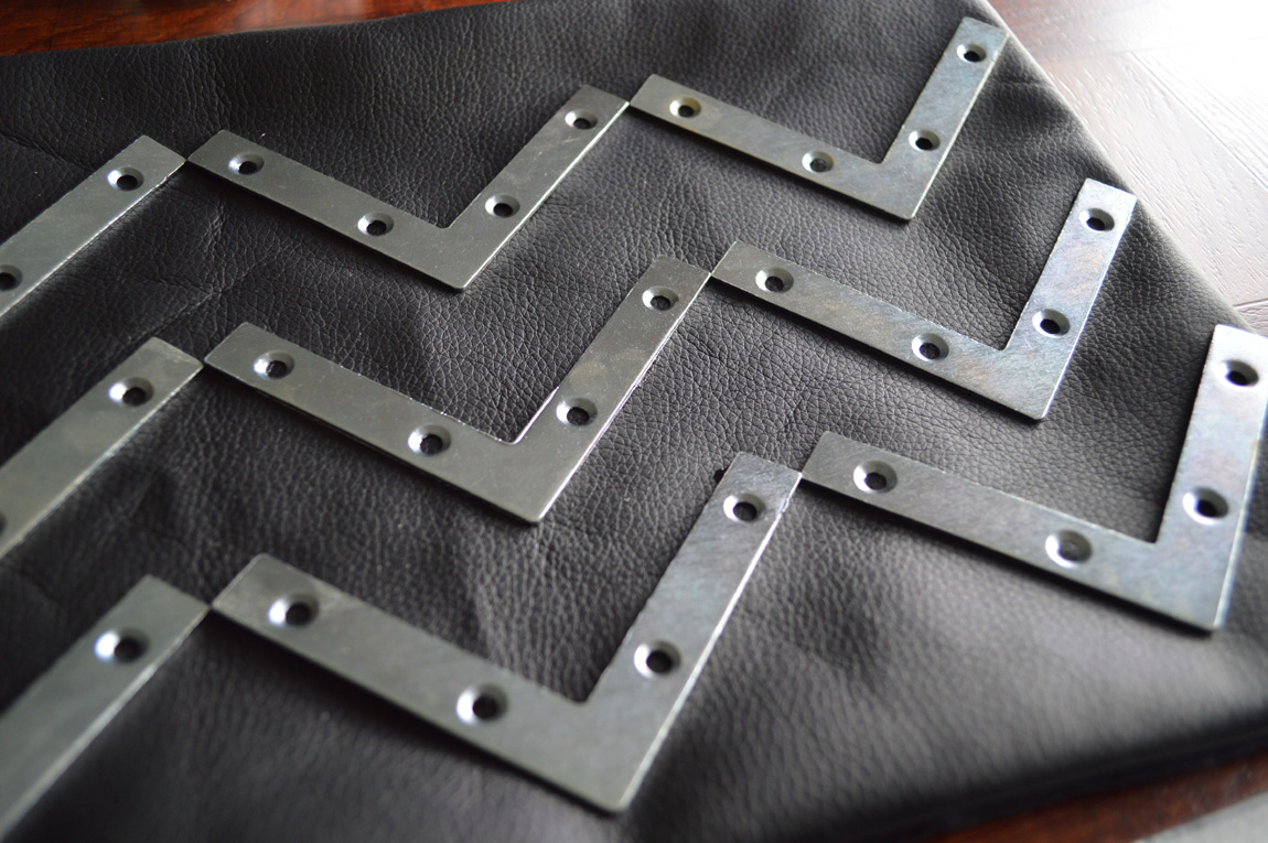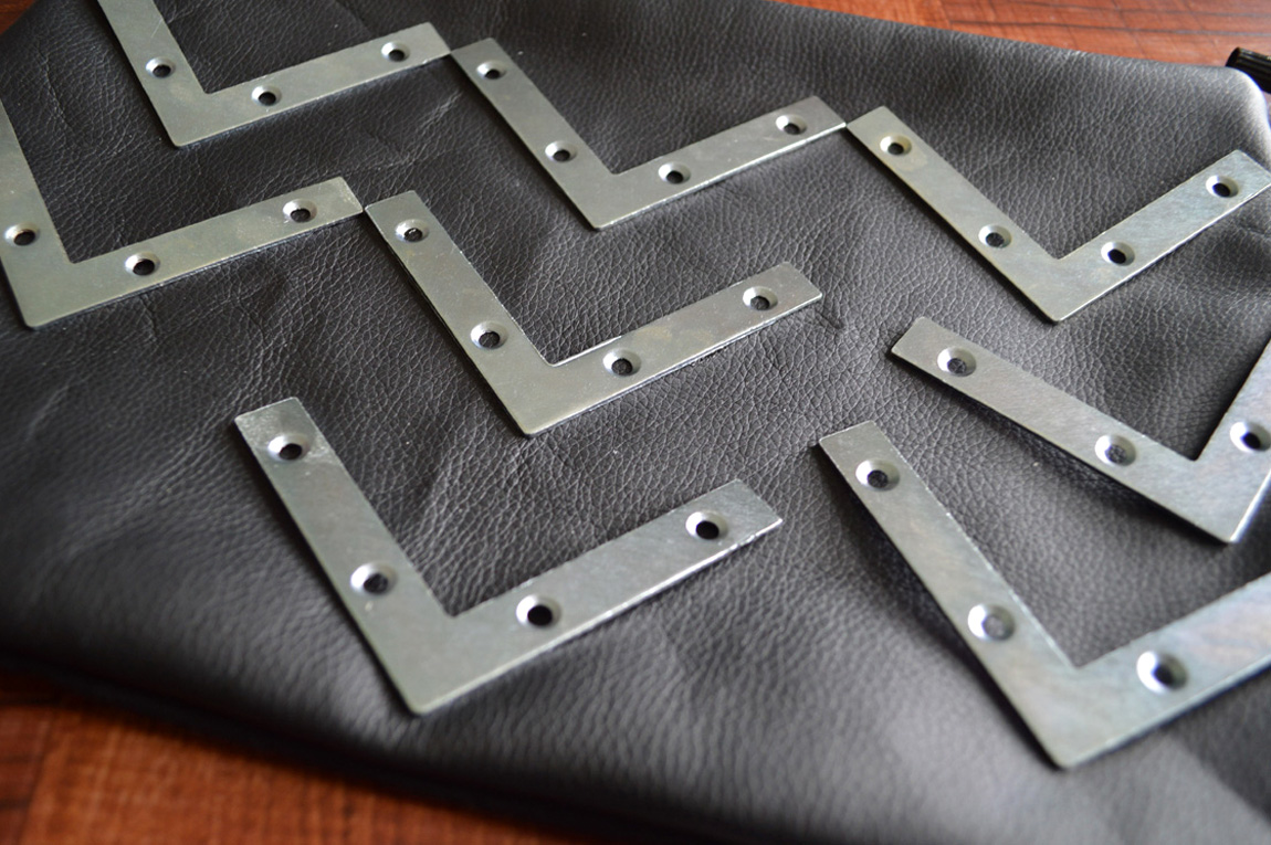 As I mentioned in the most recent “Inspiration Spotting” post, I’ve always had a thing for metal elements. From brass to silver, even just a touch of metal can add some dimension to a piece. With my new found adoration for hardware stores, I’ve been searching for ways to incorporate these elements in an interesting way. Today’s project uses metal braces to create a chevron pattern on a clutch – love!