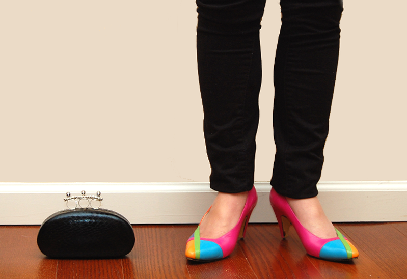 (I love my obnoxiously bright shoes. They’re vintage, the heel height is practical, and they cost me $1.99!)