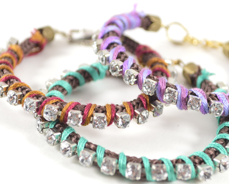 There are honestly SO many thread-wrapped-rhinestone-cord-chain-etc etc etc tutorials out there. Regardless, I still decided to make and share this because of the actual supplies it uses. The cord used in this project is actually something extremely ordinary and will cost you practically nothing.