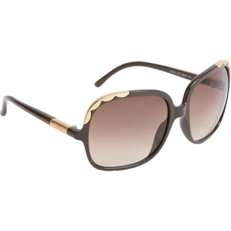 They were initially inspired by a pair of $295 Chloé sunglasses that I spotted at Saks Fifth Ave. about a month ago (below). I fell in love with them, but the gold scallops reminded me of a different material that can easily be substituted.