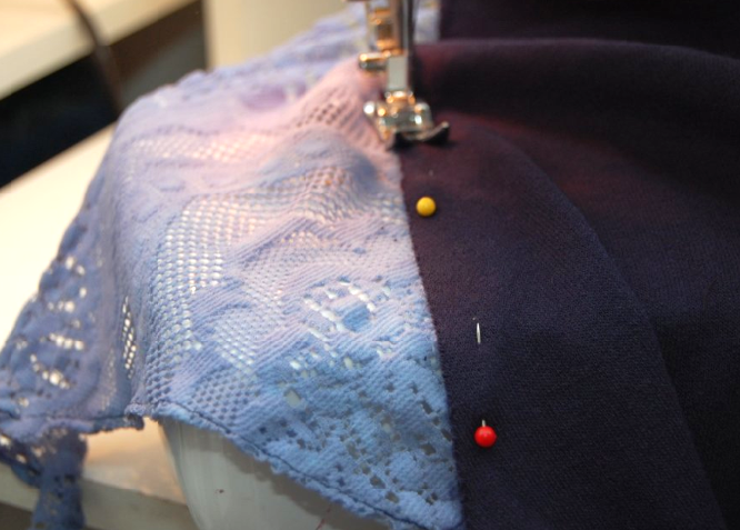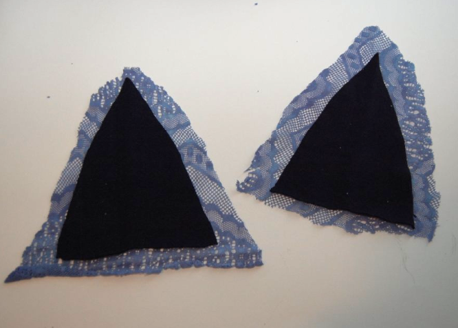 5) Cut out the lace, about an inch bigger all around than the sweatshirt triangles.