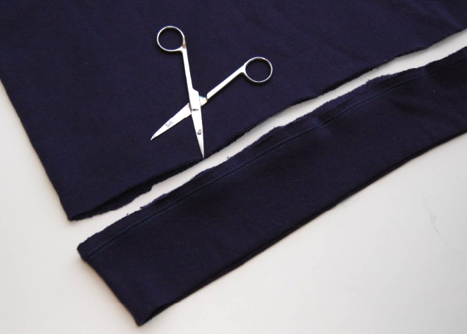 2) Cut off the bottom band of the sweatshirt.