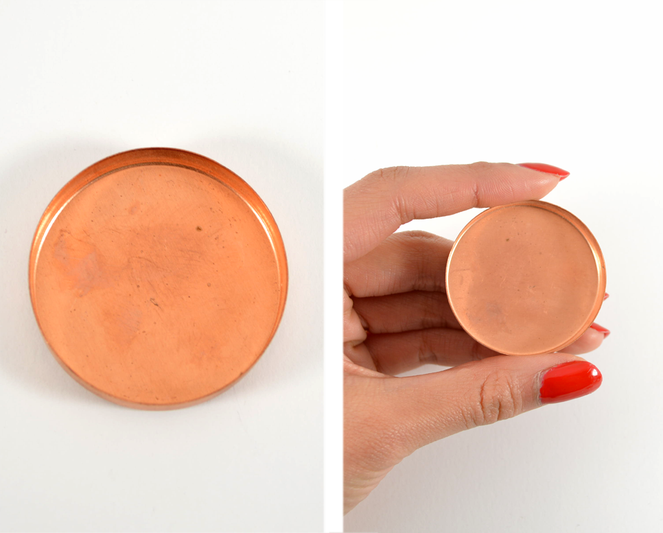 As of last autumn, the hardware store has become a new source of inspiration for me. I have quite a few projects lined up using odds and ends found at the hardware store, all of which are still fashion/home decor related. I’m excited to share them! Past hardware store related projects included the Wood Coaster Set and the Vinyl Tube Bracelets. Here’s yet another one: a bangle bracelet, embellished with a copper test cap filled with jewelry gel and stones. Copper test caps are used in sewage plumbing; this one cost about $1.50 at Home Depot.