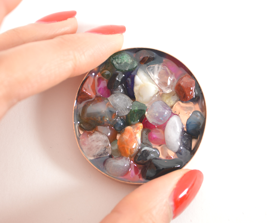 5) Continue until the cap is full (or until the cap is partially full, it’s up to you!). You can also add another layer of jewelry gel over the entire thing if you’d like.