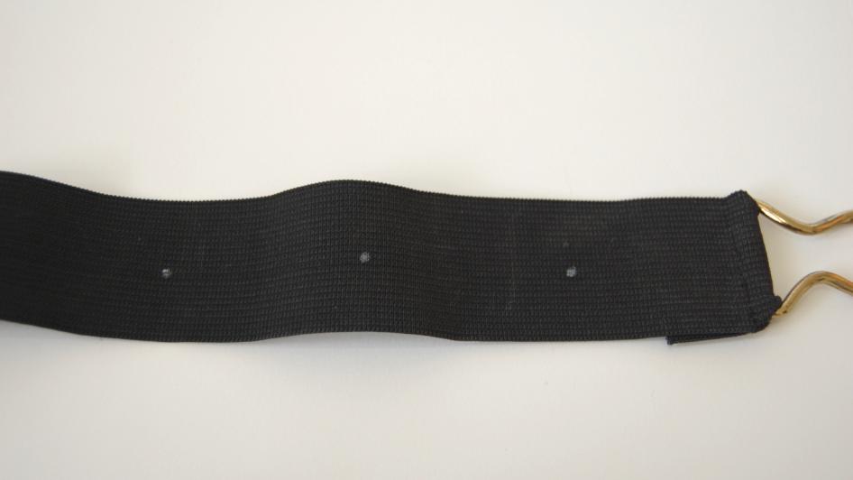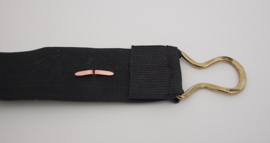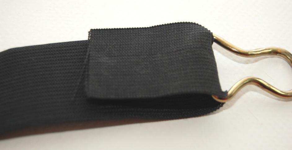 1) Measure a piece of elastic at the length desired – I decided to make mine a waist belt. Add half an inch to an inch at both ends. Slip an end of the elastic through one of the belt closures and secure with some hot glue.