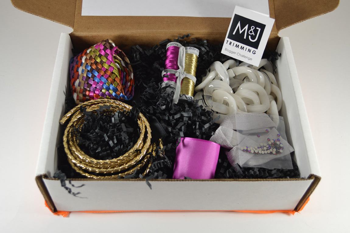 I’m excited to share that studs & pearls recently participated in M&J Trimming’s Third Annual Blogger Challenge! In this challenge, M&J Trimming (one of my favorite places to shop for supplies in all of New York) sent a box of surprise supplies to 7 different DIY bloggers. Each blogger received the same supplies, but created their own tutorials. It’s always interesting to see what everyone comes up with using the same blind box – exactly why I love creative projects to begin with!