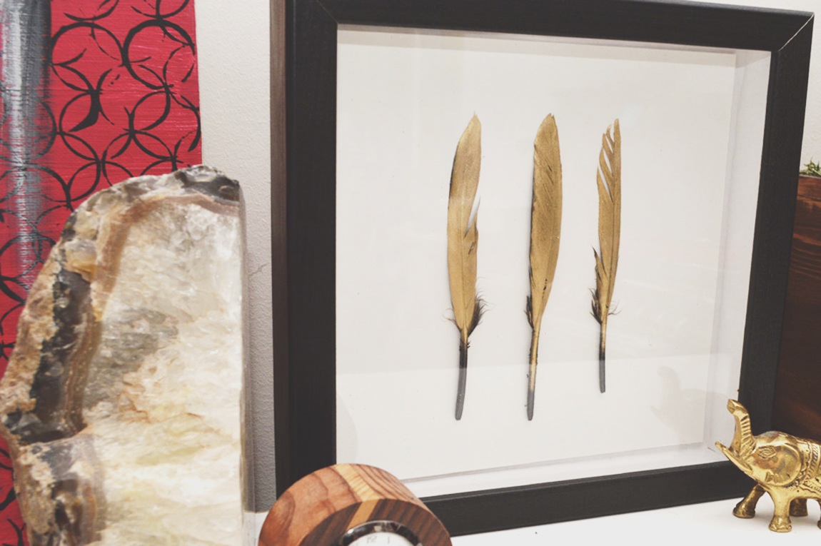 During a trip to Target a few weeks ago, I spotted some feather wall art that caught my eye. It was totally my style and taste, but I took one glance at it and knew I could easily re-create it. All I needed was a shadow box.