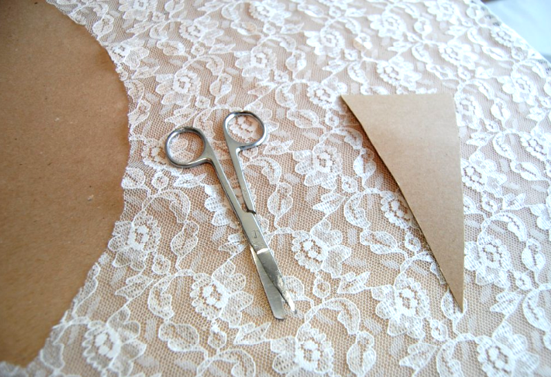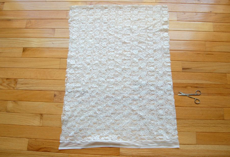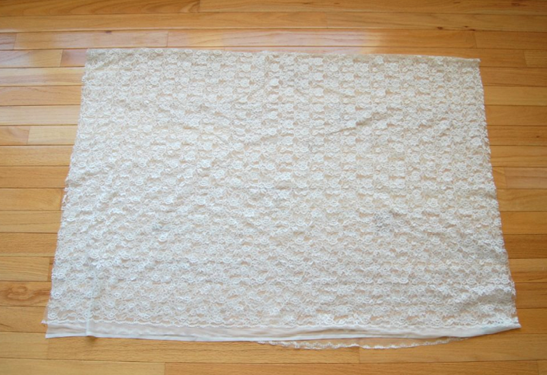1) Fold lace in half, so that the edges meet on the bottom.