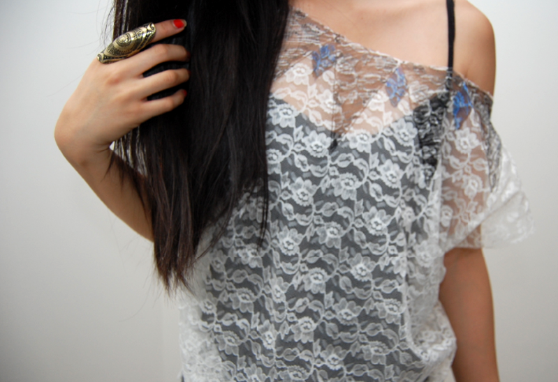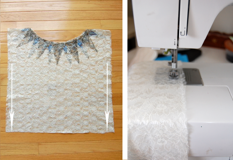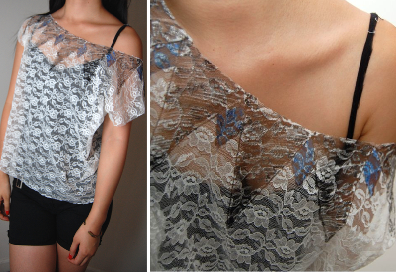 The finished top. I love how the ink brings out the lace’s pattern.