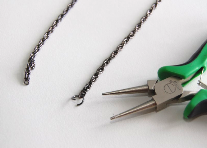 6) Trim the chain if needed. Use a jump ring and pliers to attach the ends of the chain together.