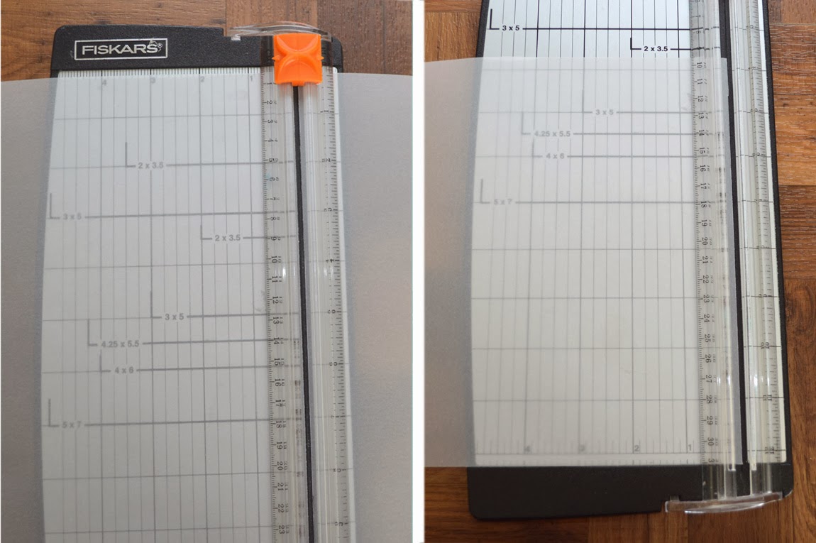 2) Trim the vellum. You can do this by hand; however, I recommend a paper cutter for a perfectly straight cut, as the vellum will be going through a printer. A straighter edge will be less likely to mess with the printing alignment, and the printer itself.