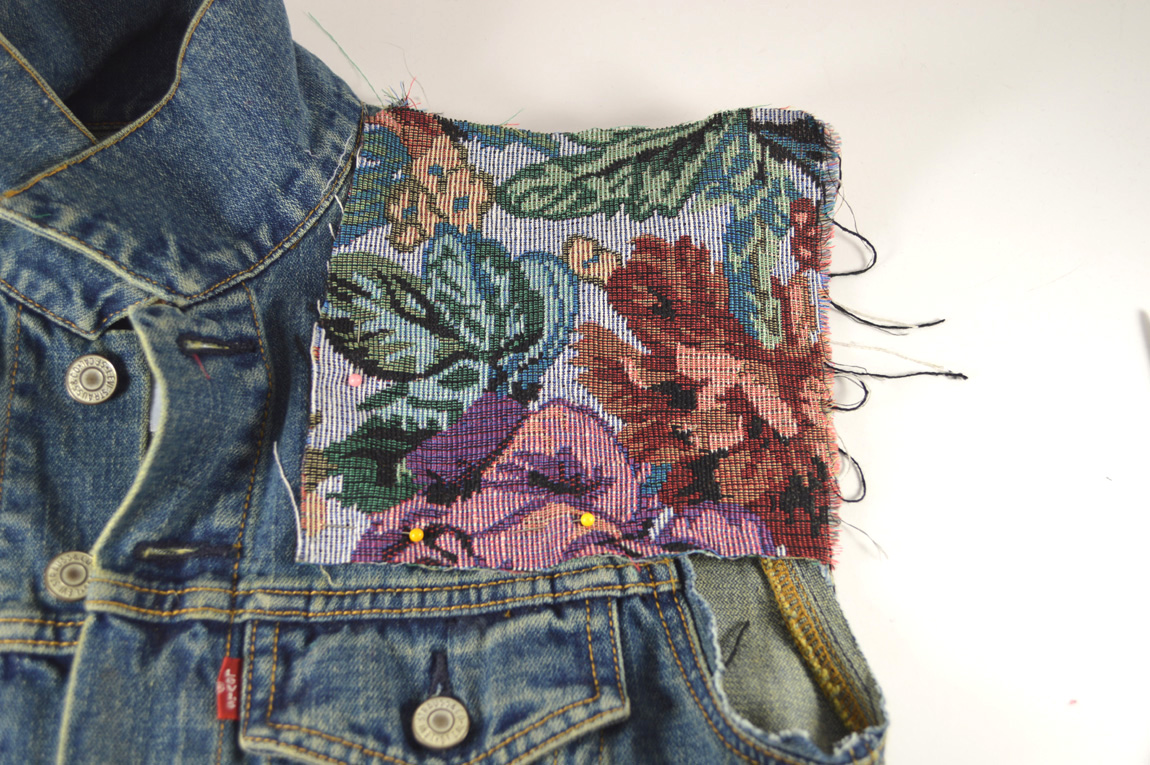 - (To cut a denim jacket into a vest, simply cut off the sleeves using the shoulder seam as a guide)